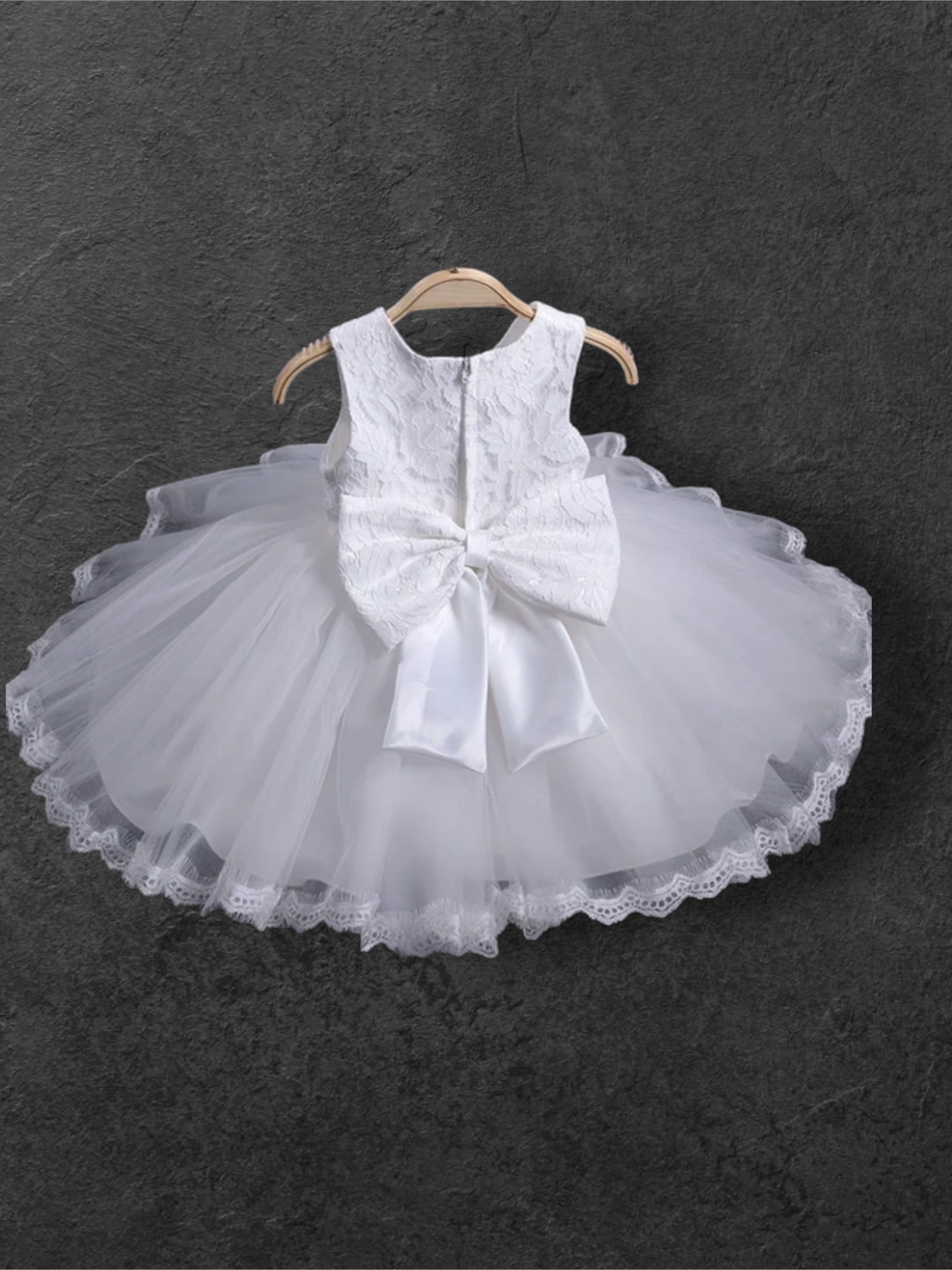 Baby girl formal dress white with big bow at the back