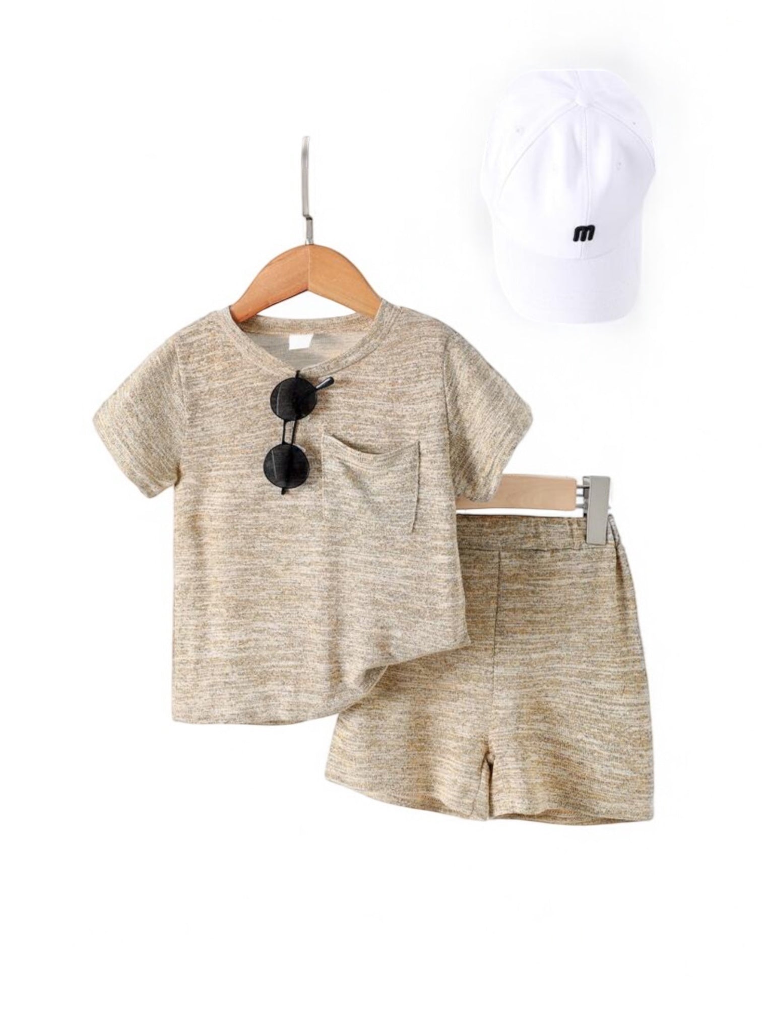 Beige 2pc pants & shirt boy baby set