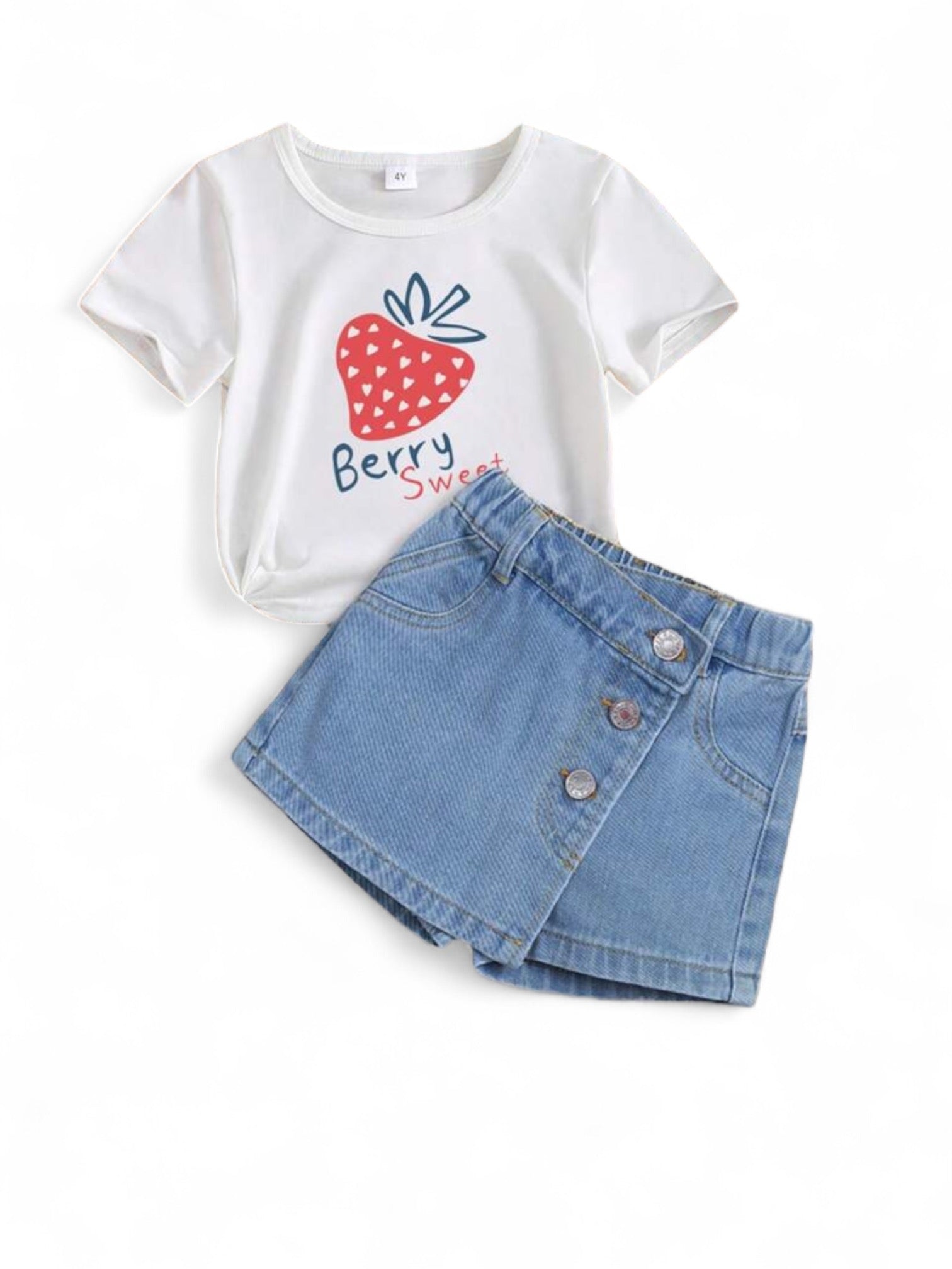 Berry sweet jeans skirt and white top girl set