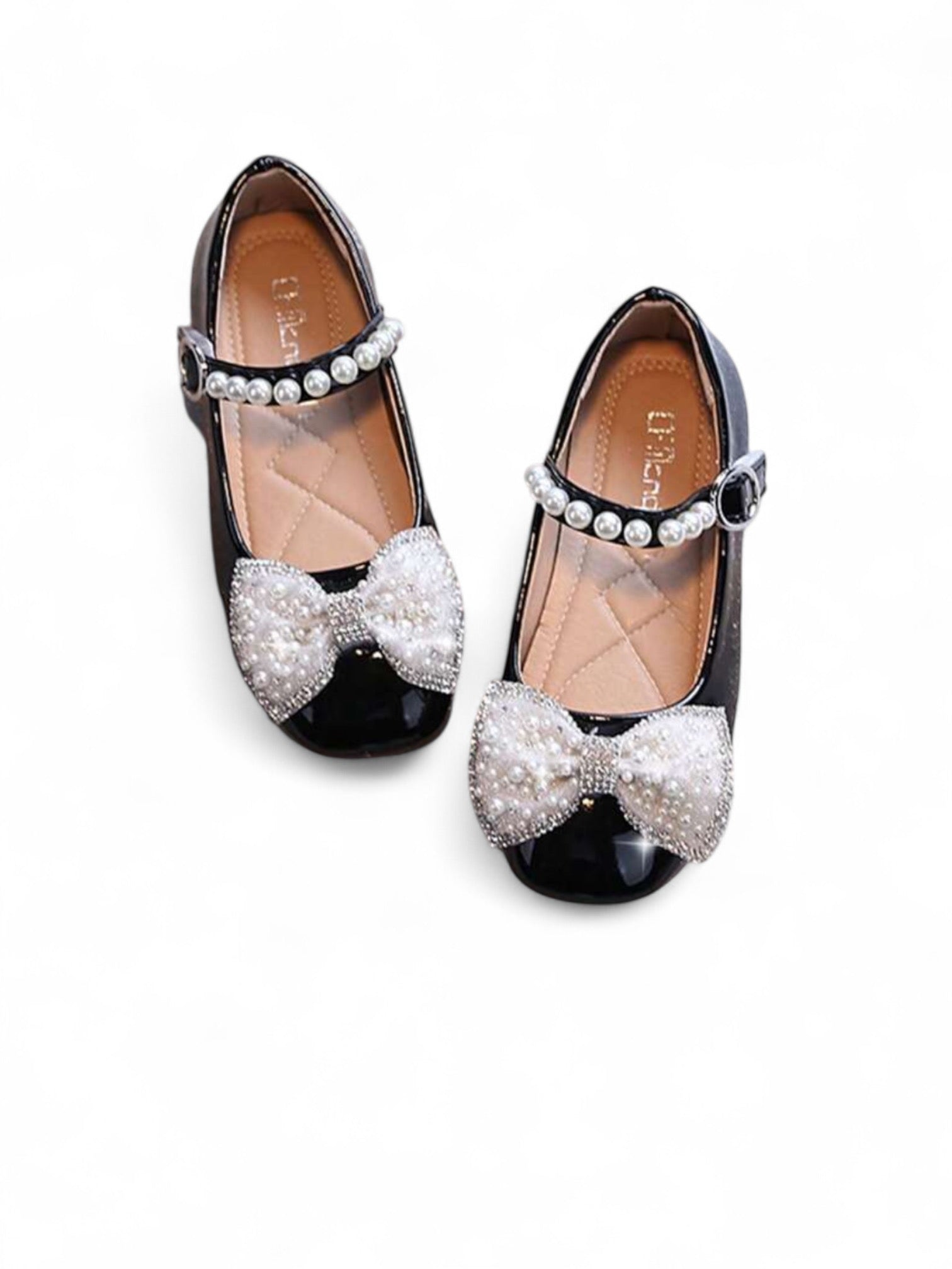 Black shoes with pearl strap girl formal shoes
