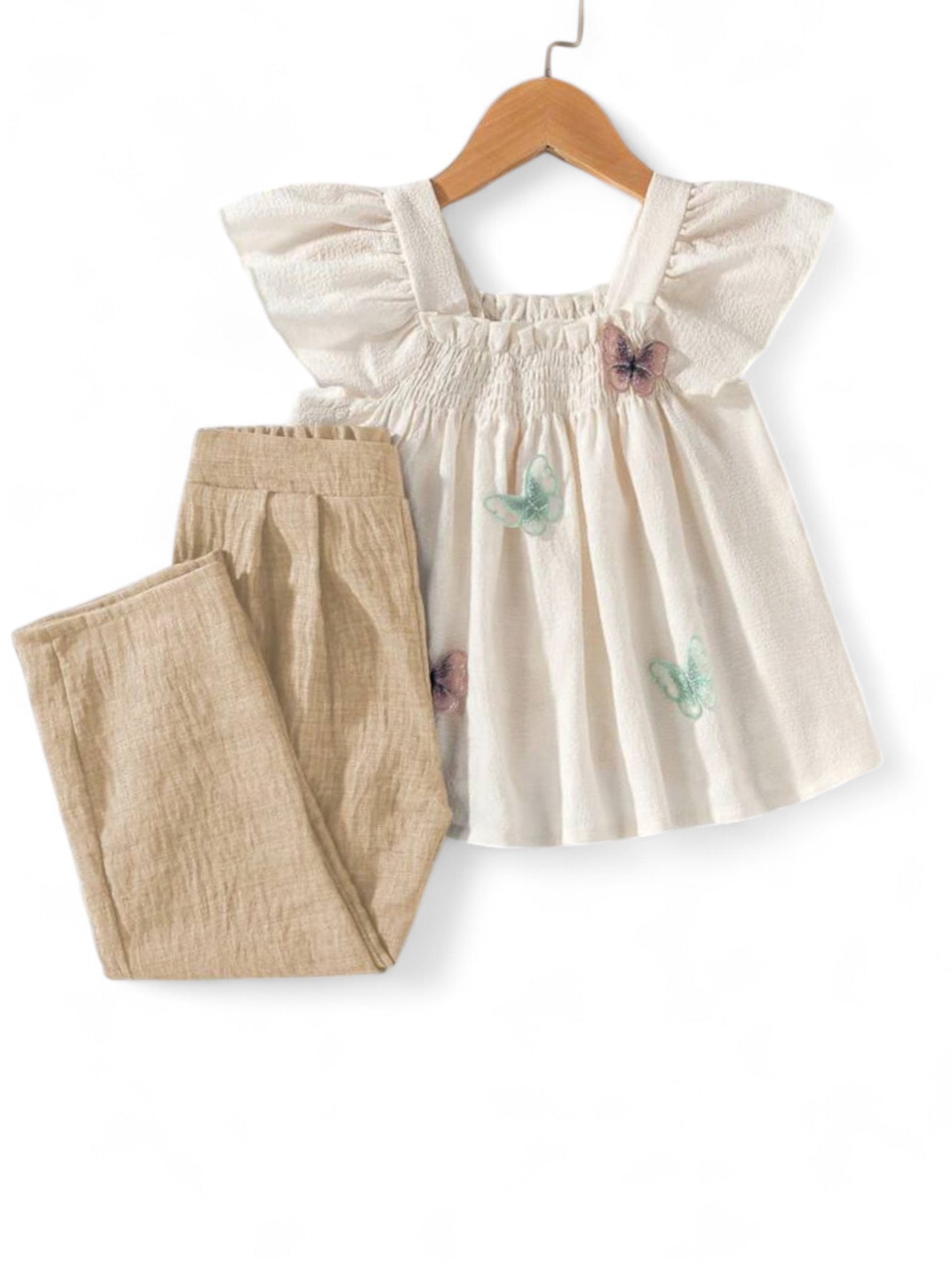 Butterfly top with long linen pants girls set
