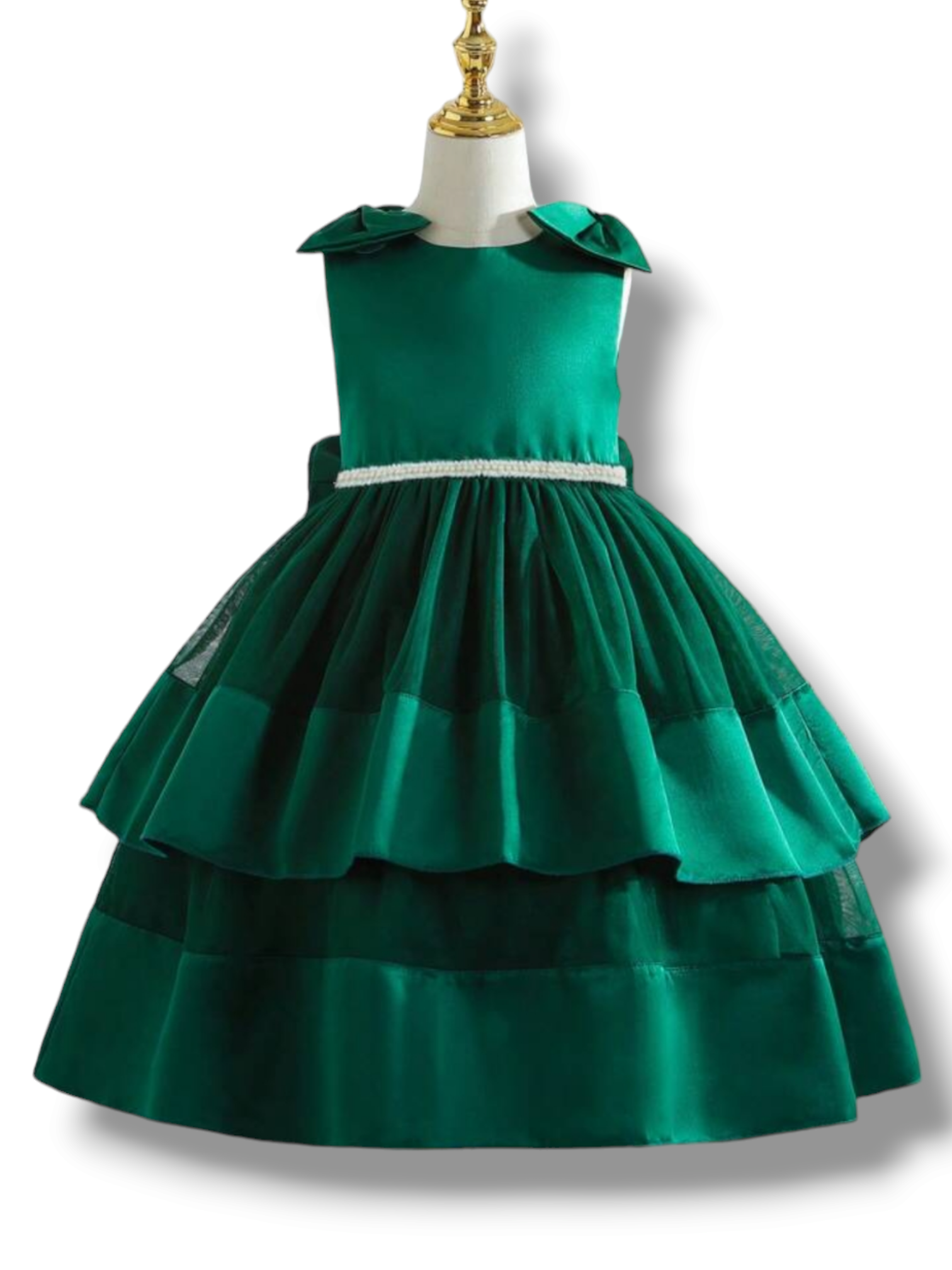Formal forest green with pearl girl dress