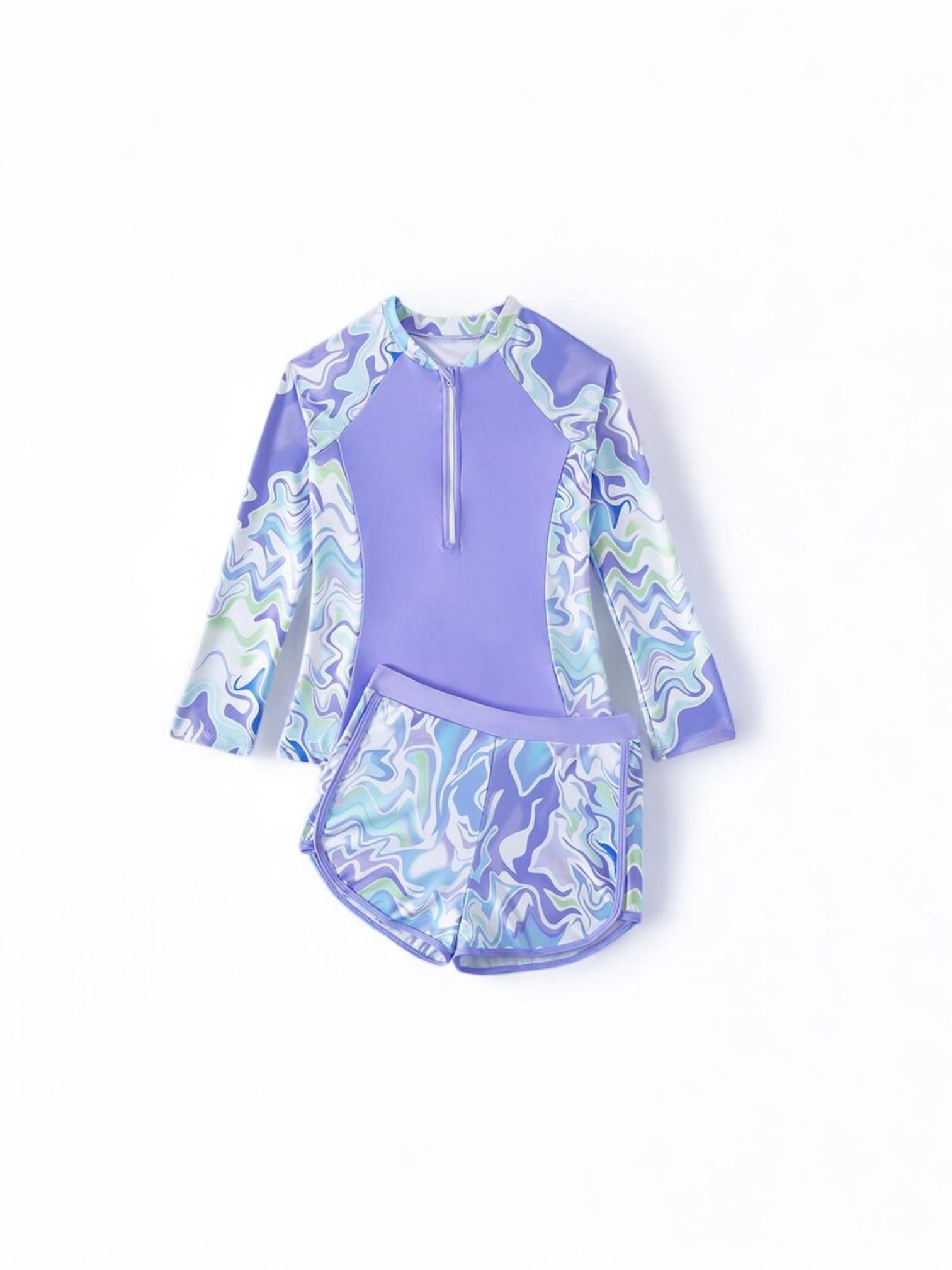 Purple multicolor swirls girl swimsuit