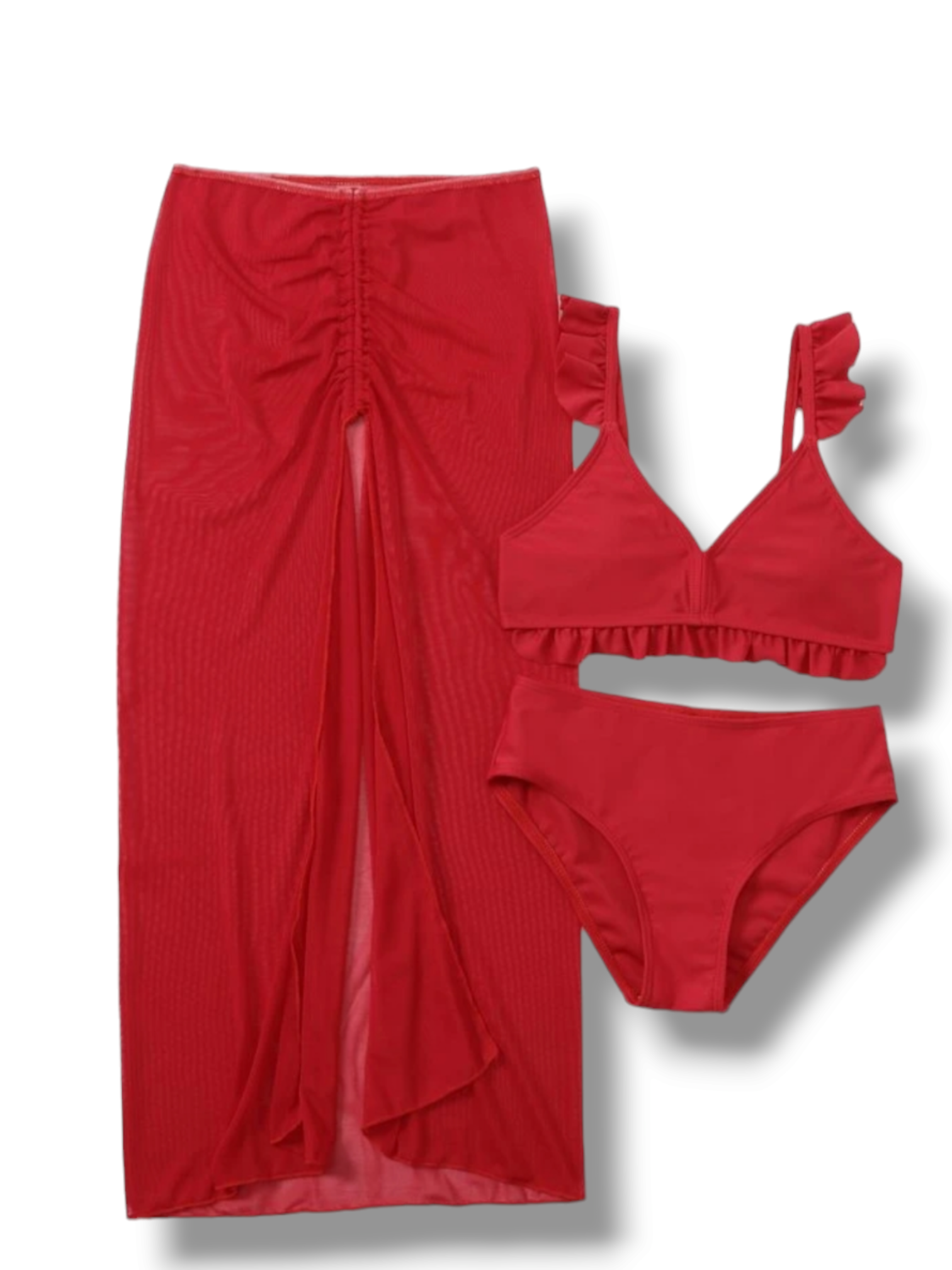Red 3pc set including cover skirt girl swimsuit