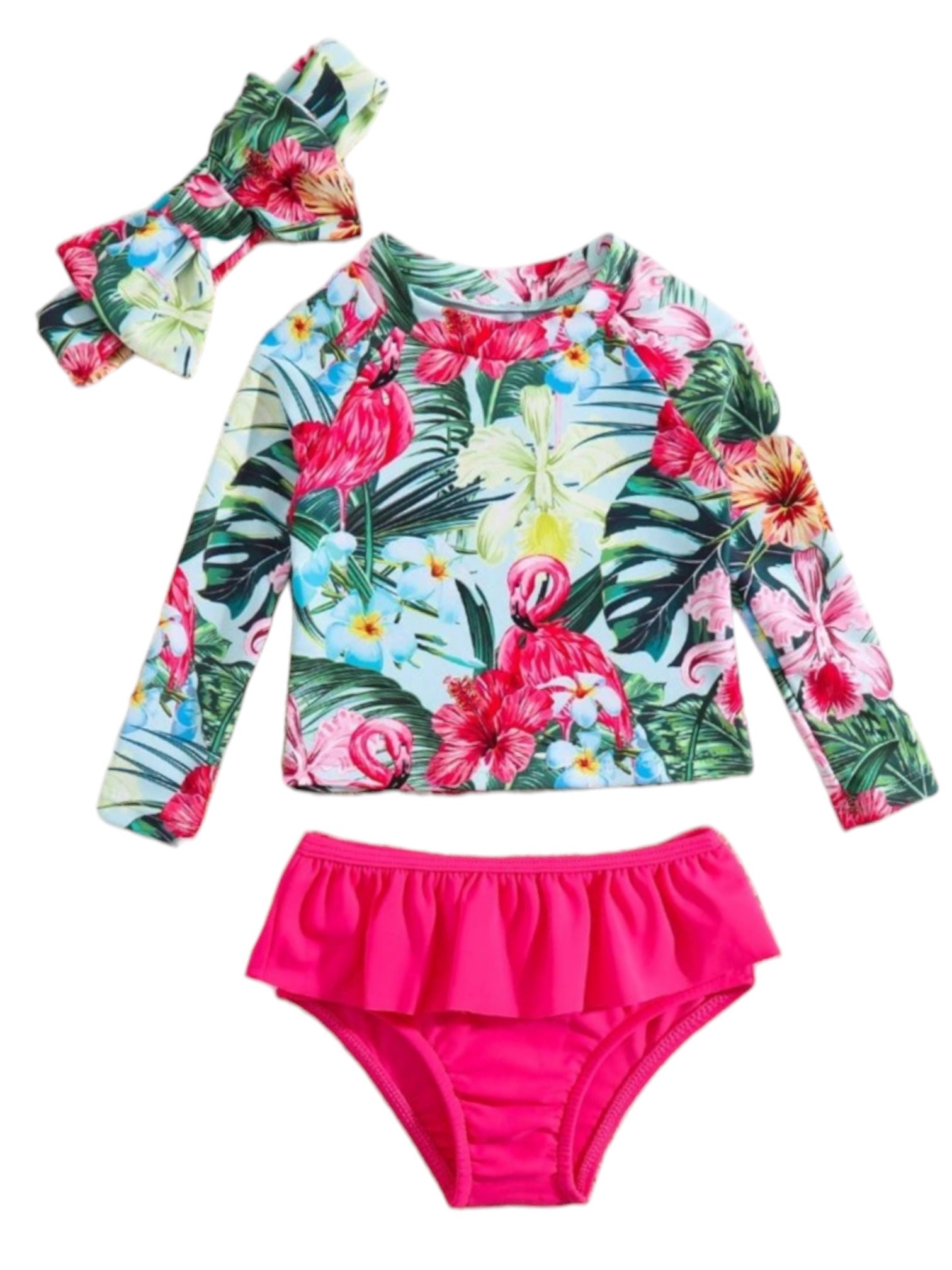 Toddler girl 2pc with bow headband baby swimsuit