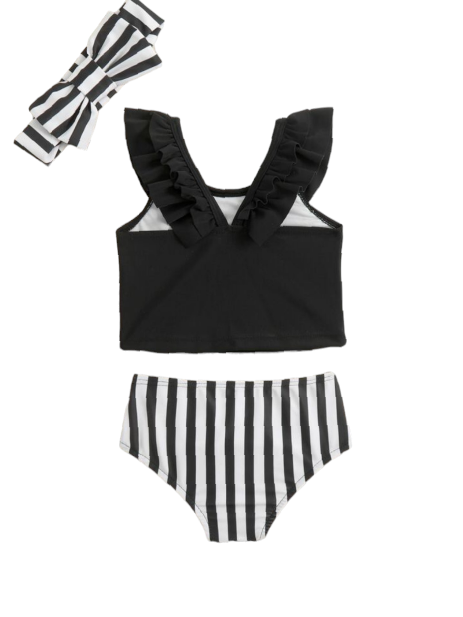 Toddler 2pc black with white stripes baby swimsuit with headband