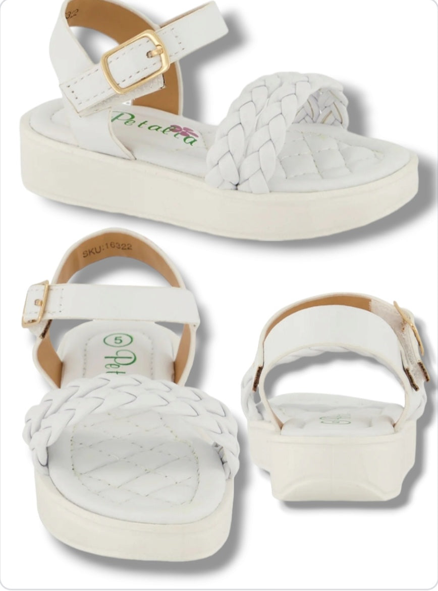 Toddler girl double braided white sandals