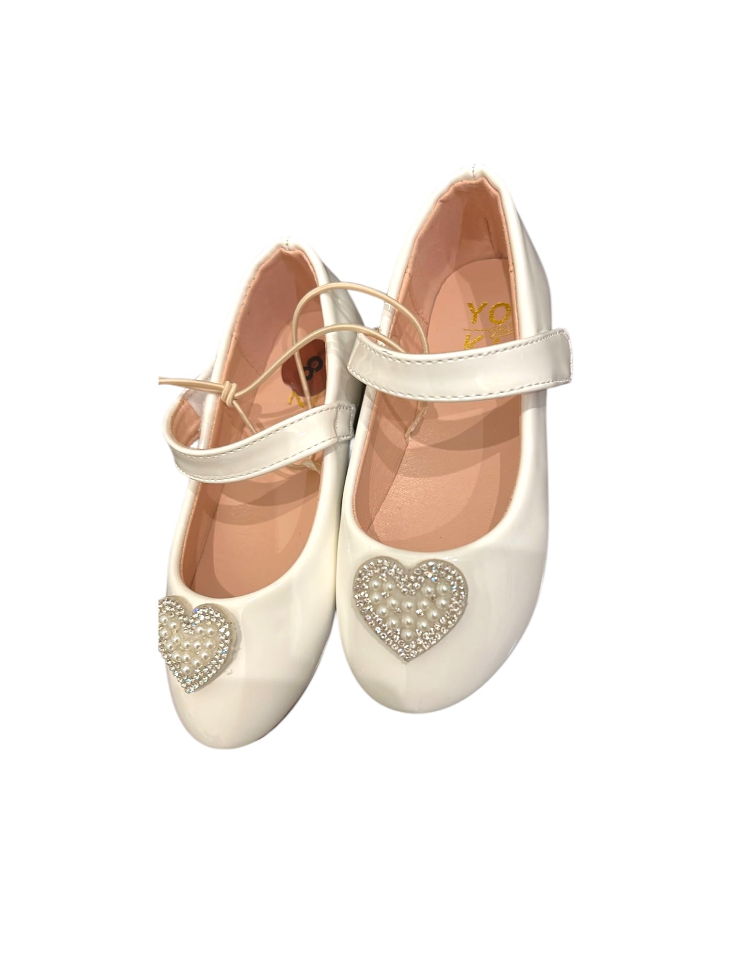 White with pearl hearts girl formal shoes